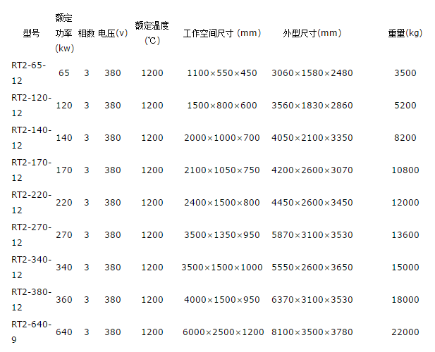 常规炉规格尺寸:(尽供参考,主要尺寸有用户自定)