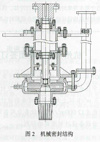 脱硫系统长轴液下泵轴封多采用机械密封,结构如图2所示。